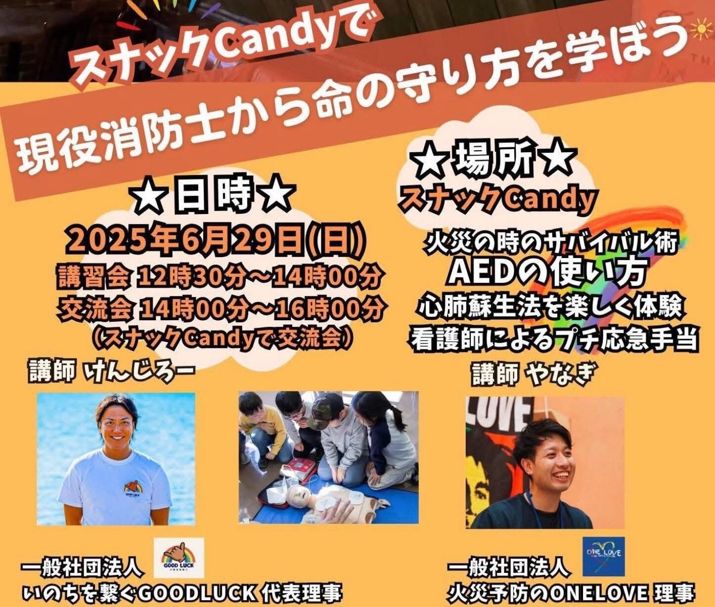 6/29 『スナックCandyで現役消防士から命の守り方を学ぼう』 には参加できないけど、この活動を応援頂ける方向けに 後日、講義のアーカイブをお送りします